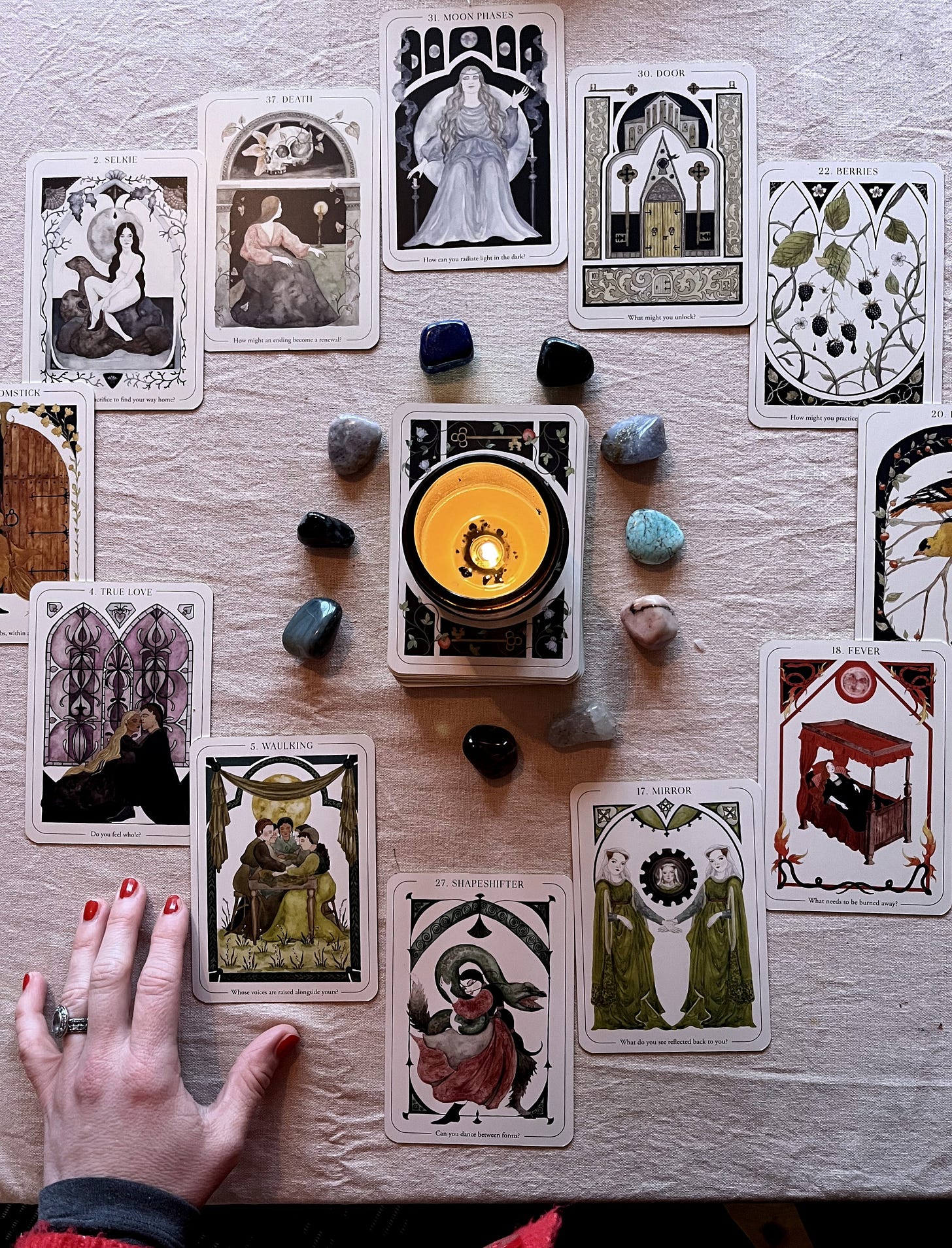 Oracles and omens — in the final days of December, I found a precious hour to myself to create my oracle spread for the year ahead, a gentle practice inspired by liz ❍↟☽, this year using the Folklore oracle deck.
