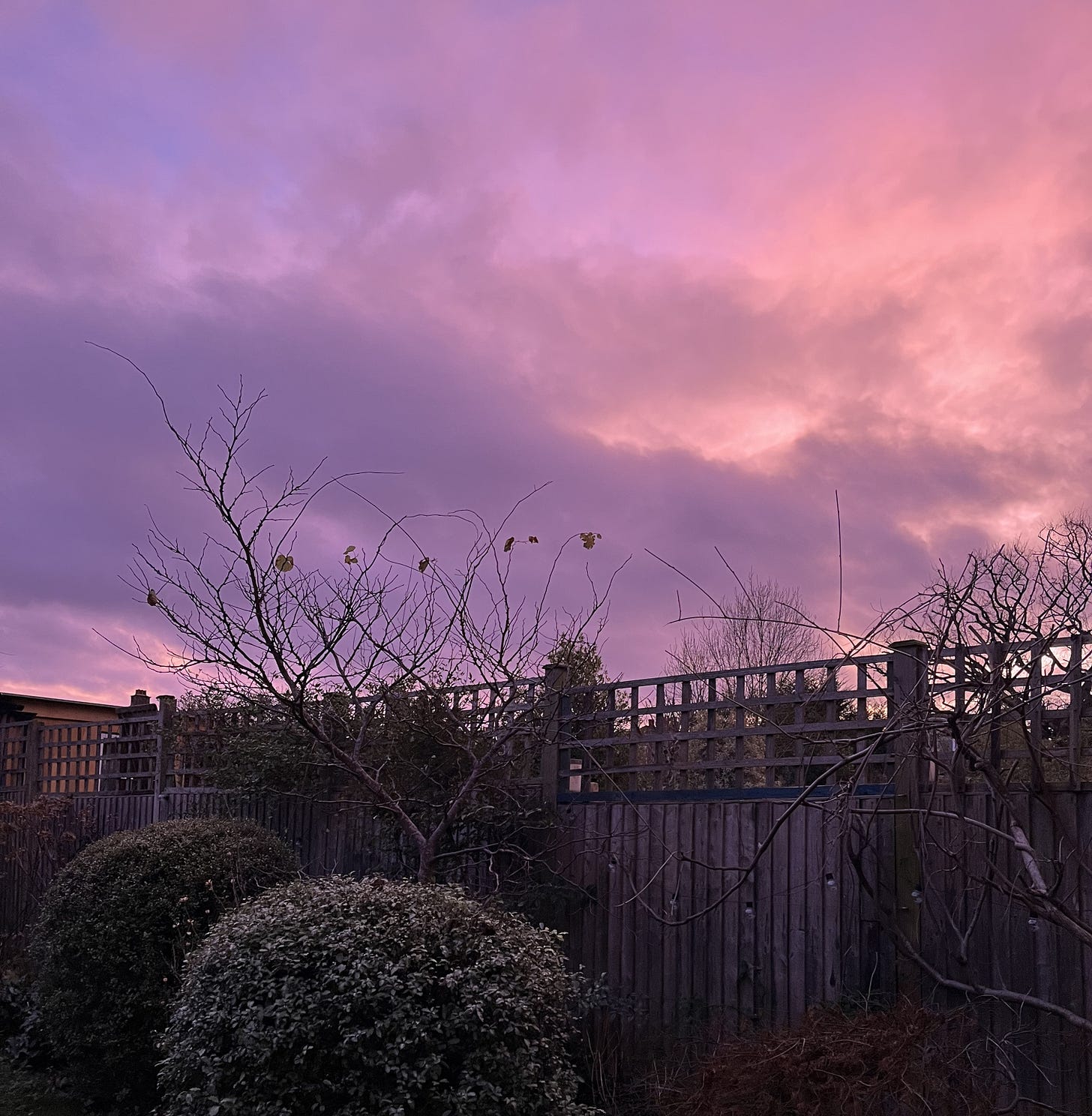 I have been reflecting about how I continue to find more contentment in the short, dark days of winter as each year passes, whilst also being comforted by all of the glimmers of light I can find. The first thing I do in the morning is to open the curtains and take in the colour of the sky — sometimes still in complete darkness with twinkly lights visible through our neighbours’ windows, sometimes a chalky cloud blanket, or a watercolour palette of pastel shades.