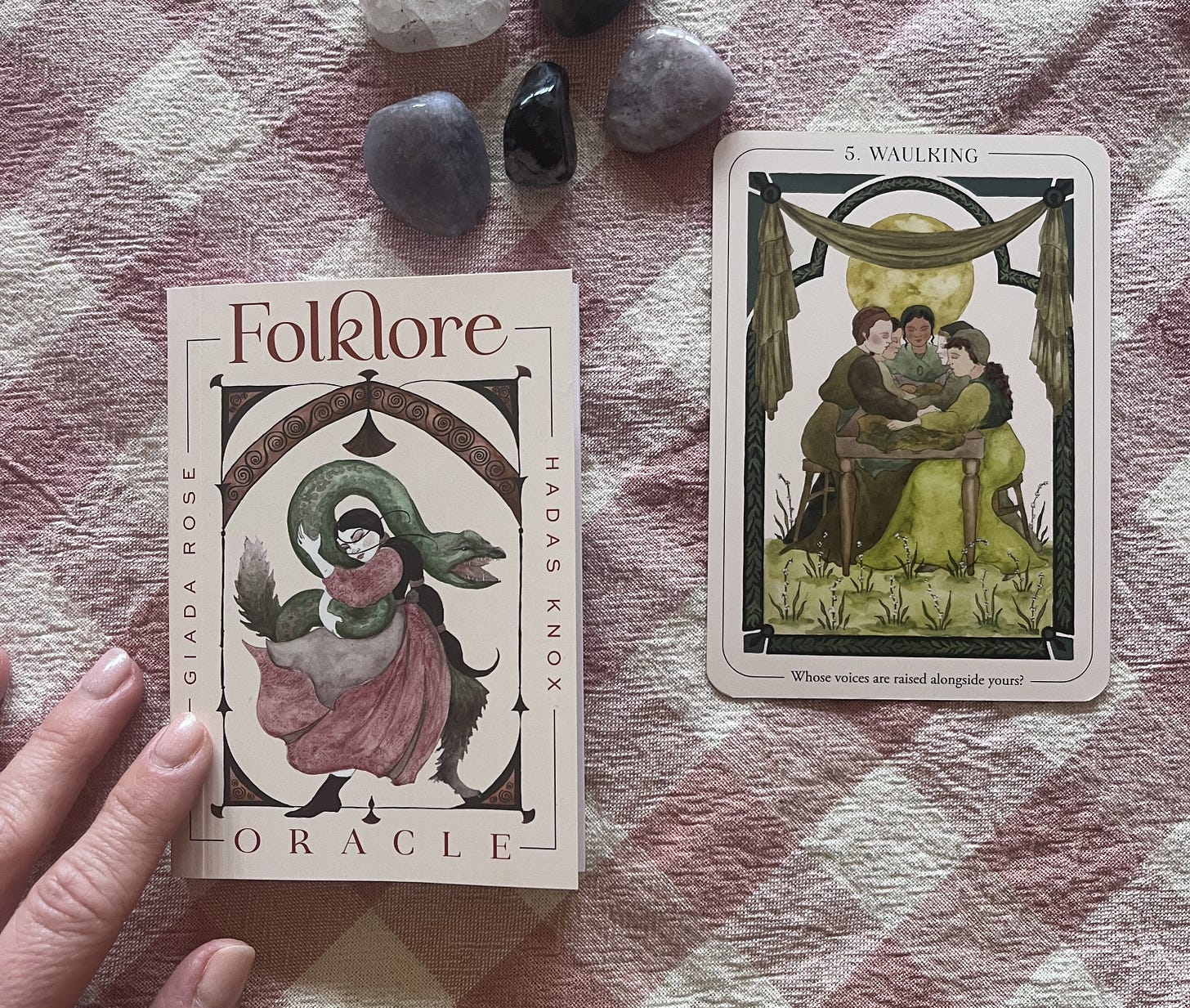 This year’s IWD theme conjured with Claire Venus ✨ Lauren Barber Laurita Gorman Laura Durban Georgia, Women Weaving, was originally inspired by an oracle card I pulled from the Folklore Oracle by Giada Rose and Hadas Knox — the waulking card takes us back centuries to the Scottish Highlands where groups of women worked the community’s woollen cloth to make it softer and thicker. The process, dating back to medieval times that continued until the mid-twentieth century, is called ‘waulking’, rhythmically beating tweed against a hard surface whilst singing (it sounds very therapeutic to me!).